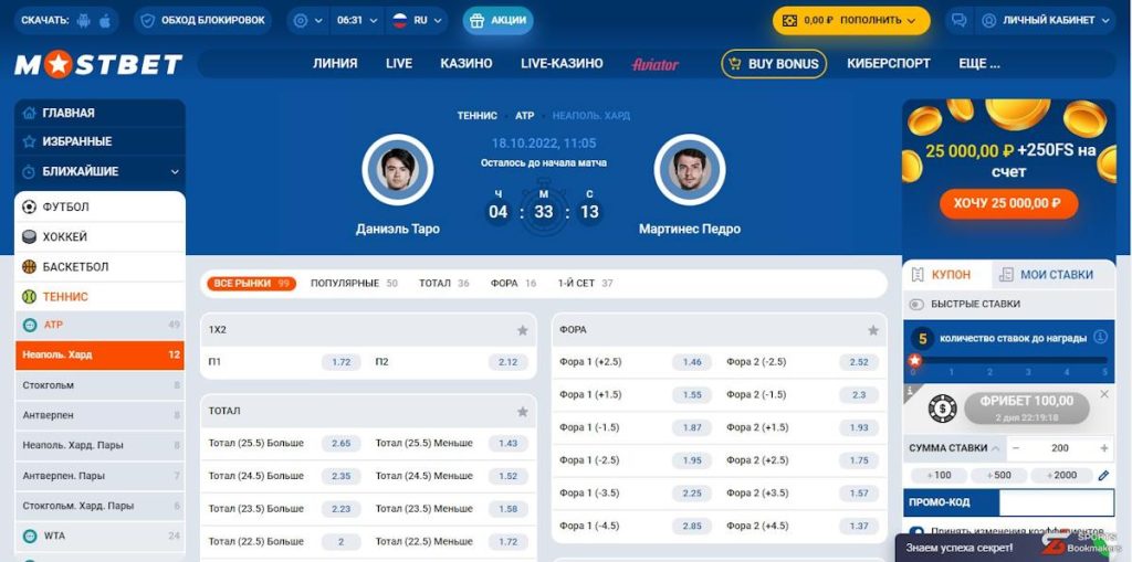 Главный ресурс букмекерской конторы Mostbet представляет собой современную онлайн-платформу с продуманным интерфейсом и высоким уровнем защиты данных. На портале предусмотрены разделы «Спорт» и «Live», где пользователи могут заключать пари на футбол, хоккей, теннис, баскетбол, киберспорт и другие дисциплины. В линии доступно более двадцати видов спорта, а роспись популярных событий насчитывает сотни вариантов прогнозов: от исхода матча до индивидуальной статистики игроков.